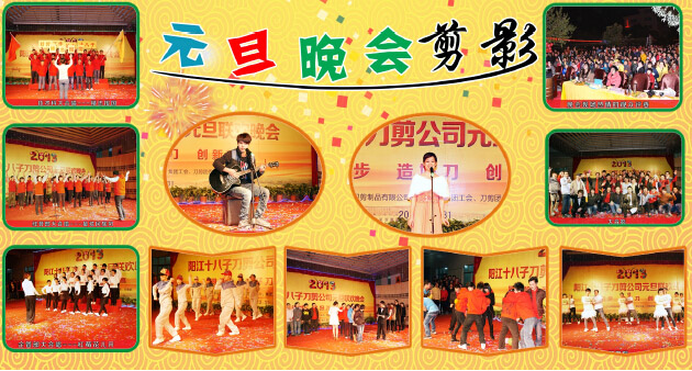 2012年12月31日晚,刀剪公司在工廠內(nèi)舉辦了一臺(tái)主題“同進(jìn)步 造好刀 創(chuàng)新高”元旦晚會(huì)。